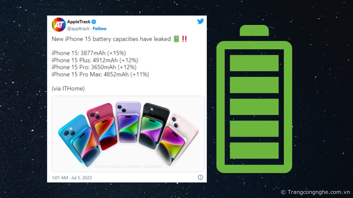 Bài viết trên, Trang Công Nghệ đã mang đến cho người đọc thông tin tổng hợp về iPhone 15 series. Chỉ còn vài tiếng nữa là người dùng sẽ được trải nghiệm dòng điện thoại thông minh hot nhất năm nay.