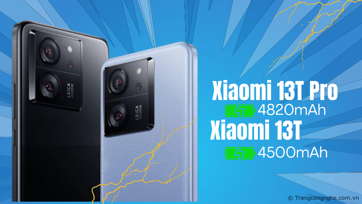 Dung lượng pin của hai phiên bản có sự chênh lệch nhỏ. Xiaomi 13T Pro sẽ đi kèm với một viên pin lớn hơn, dung lượng lên đến 4820mAh, trong khi phiên bản tiêu chuẩn của Xiaomi 13T sẽ có viên pin dung lượng 4500mAh. Sự khác biệt trong dung lượng pin này có thể ảnh hưởng đến thời gian sử dụng của điện thoại và hiệu suất năng lượng. Tuy nhiên, ở phiên bản 13T chỉ hỗ trợ sạc nhanh 68W và 13T Pro với con số gây ấn tượng 120W.