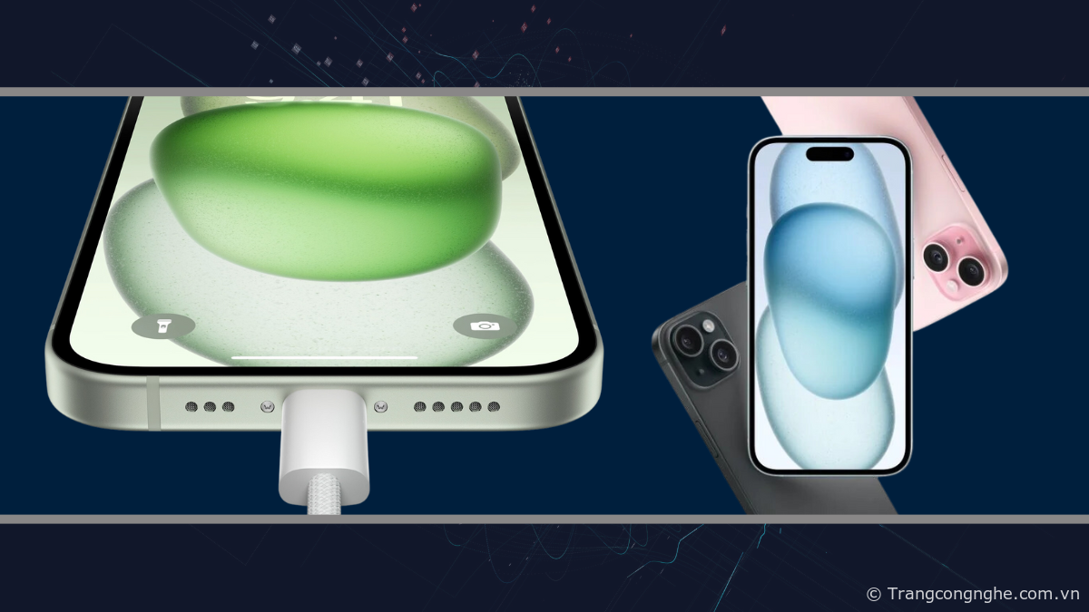 - Loại bỏ cổng sạc Lightning thay bằng sạc USB-C. Người dùng có thể sử dụng cùng một cáp USB-C để sạc và chuyển dữ liệu giữa iPhone và các thiết bị khác như máy tính Mac, iPad, hoặc các thiết bị có cổng USB-C khác.