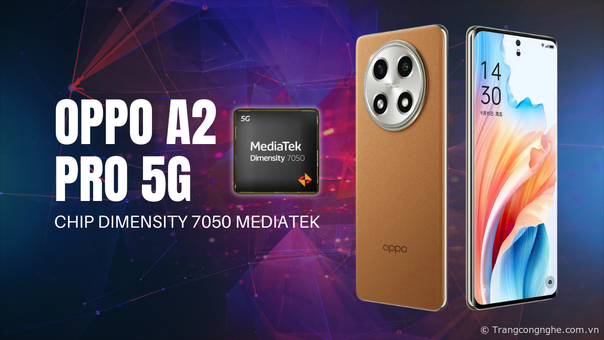 OPPO A2 Pro 5G cung cấp sức mạnh bởi vi xử lý MediaTek Dimensity 7050, kết hợp với 2 phiên bản tuỳ chọn RAM 8GB hoặc 12GB và bộ nhớ trong lên tới 512 GB. Thiết bị được cung cấp năng lượng bởi viên pin 5.000 mAh, hỗ trợ sạc nhanh 67 W.