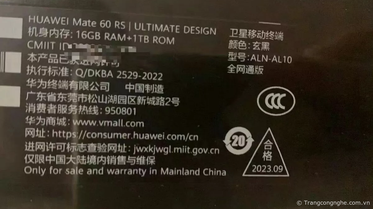 Cấu hình Huawei Mate 60 Ultimate Design mạnh mẽ