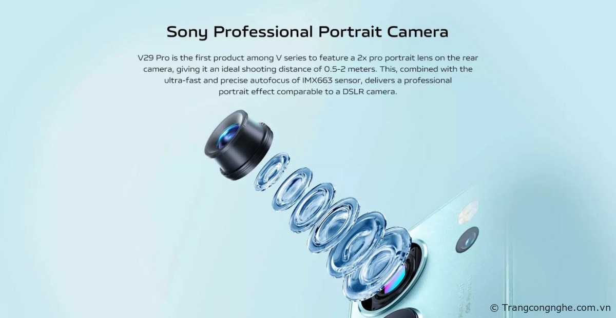 Camera chính của V29 Pro tương tự như trên V29 và V27 Pro, đó là cảm biến IMX766 50MP (1/1.56”) với chống rung quang học OIS cùng tính năng lấy nét theo ánh mắt để khuông mặt luôn được lấy nét tự động. Một camera góc siêu rộng 8MP cũng được trang bị trên mẫu máy này.