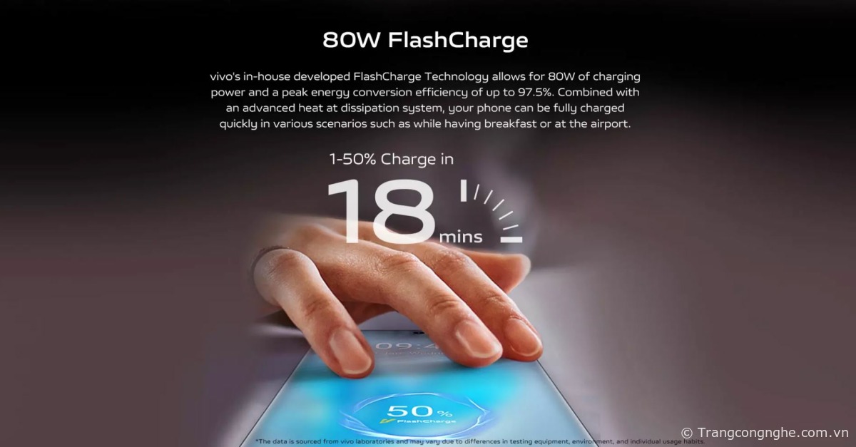 Để so sánh với V27 Pro cũng sử dụng chip Dimensity 8200 thì điểm nâng cấp đáng giá trên V29 Pro là khả năng sạc nhanh mang công nghệ FlashCharge 80W cùng dung lượng pin 4.600mAh, trên V27 Pro và V29 trước đó chỉ ở mức 66W. Hệ thống sạc nhanh 80W có thể sạc từ 0 lên 50% dung lượng pin chỉ trong 18 phút.