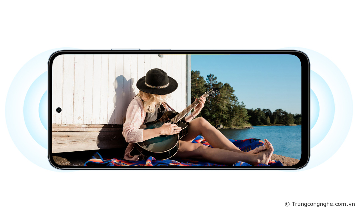 Mặt sau, máy có thiết lập camera đôi với cảm biến chính 50MP và cảm biến đo độ sâu 2MP được đặt trong 2 vòng tròn lớn và có thiết kế cụm camera gợi nhớ đến cách sắp xếp đã từng xuất hiện trên Galaxy S22 năm ngoái. Camera selfie ở mặt trước là cảm biến 8MP.