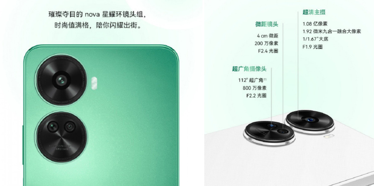 Camera chính có cảm biến 108MP và nằm ở phía trên trong khi phía dưới chứa ống kính góc siêu rộng 8MP và hỗ trợ macro 2MP. nova 11 SE sẽ sử dụng thiết kế màn hình phẳng với độ dày thân máy là 7,39mm, trọng lượng 186 gram.