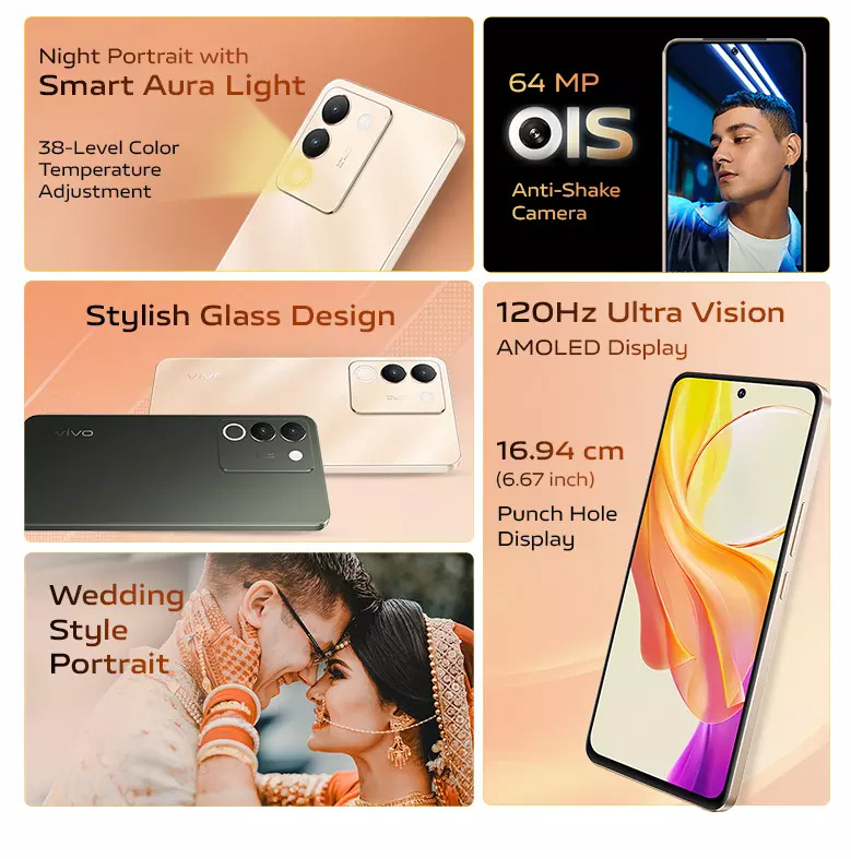 Ở mặt sau, vivo Y200 5G đi theo ngôn ngữ thiết kế chung của các sản phẩm từ vivo như iQOO Z7 Pro và vivo V29 Pro, với cụm camera kép cùng đèn Smart Aura Light mang tính thương hiệu. Bộ đôi camera bao gồm cảm biến camera góc rộng chính 64MP f/1.8, PDAF, hỗ trợ chống rung quang học (OIS). Cùng một camera 2 MP, f/2.4 đo độ sâu trường ảnh. Smart Aura Light có tính năng điều chỉnh nhiệt độ màu 38 cấp dựa trên ánh sáng xung quanh. Camera trước góc rộng độ phân giải 16 MP, f/2.0 cho tính năng selfie và video call.