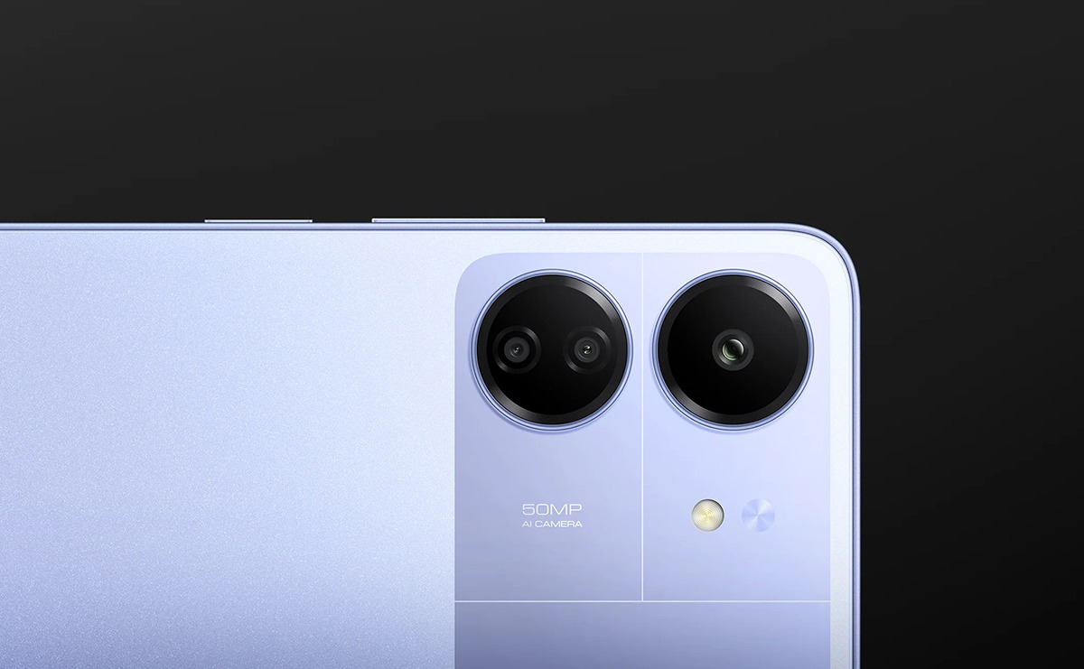 Ở mặt sau, cụm camera được đặt trong khung hình chữ nhật nhô lên nhẹ so với lưng máy. Thiết lập camera kép trên Poco C65 bao gồm cảm biến chính 50MP f/1.8 kết hợp ống kính Macro 2MP f/2.4, hỗ trợ quay video 1080P 1920x1080 30fps hoặc 720P 1280x720 30fps