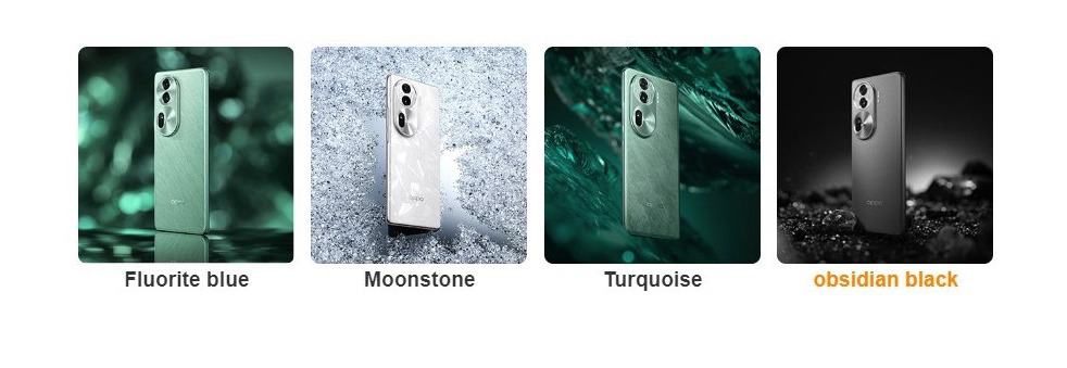 Reno11 và Reno11 Pro được cho là sẽ có bốn màu: xanh Fluorite, Moonstone, Turquoise và đen Obsidian.