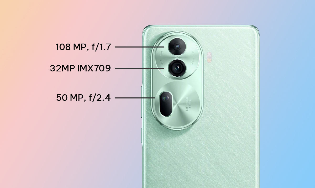 Vẫn sử dụng cụm camera hình elip độc đáo, tuy nhiên thay vì chia thành 2 phần màu đối lập trên-dưới, Reno11 đã được tách thành 2 hình tròn lớn chứa các cảm biến camera.