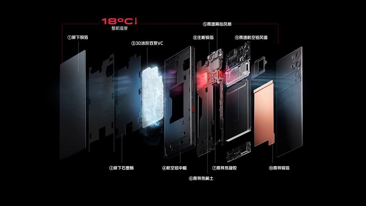 Hệ thống làm được quảng cáo là có thể giảm nhiệt độ hoạt động của điện thoại lên tới 18° và có lớp graphene bên dưới màn hình cũng như ống dẫn khí lớn hơn để luồng khí tốt hơn. Quạt bên trong thiết bị hiện quay với tốc độ 22.000 vòng/phút và có độ dẫn nhiệt được cải thiện 30%.