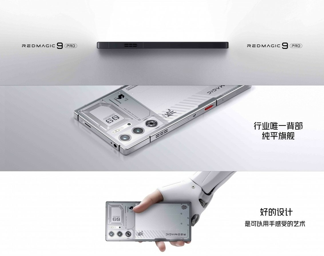Về thiết kế, tất cả các mẫu Red Magic 9 Pro đều có khung nhôm tiêu chuẩn hàng không và mặt lưng bằng kính phẳng hoàn toàn, cụm camera ở mặt sau không nhô lên như các smartphone khác.