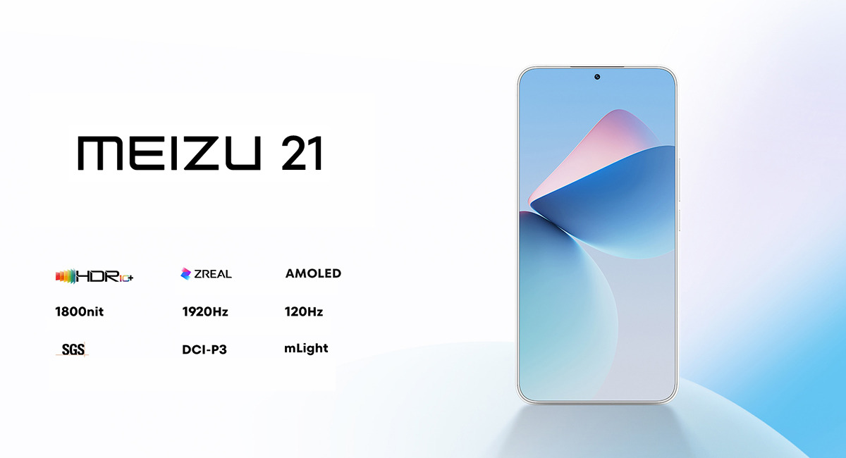 Điểm nhấn trên Meizu 21 là đèn flash dạng vòng RGB có thể hiển thị nhiều màu sắc khác nhau. Meizu 21 cũng được đạt chuẩn kháng nước IP54. Viên pin 4.800 mAh với khả năng sạc nhanh 80W.