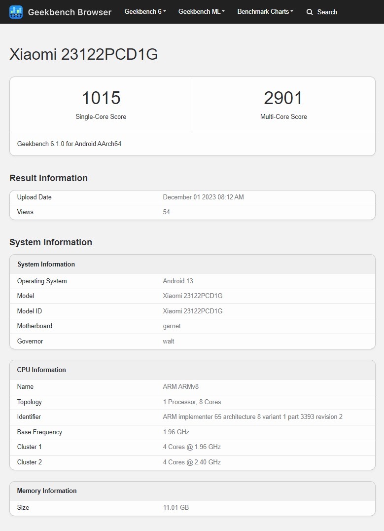 Danh sách GeekBench xác nhận thiết bị được thử nghiệm đang chạy trên vi xử lý Qualcomm Snapdragon 7s Gen 2, có 12GB RAM và được cài hệ điều hành Android 13. Thông tin này đã phần nào bác bỏ tin đồn cho rằng Poco X6 5G là tên gọi biến thể của Redmi Note 13 5G đã ra mắt tại Trung Quốc.