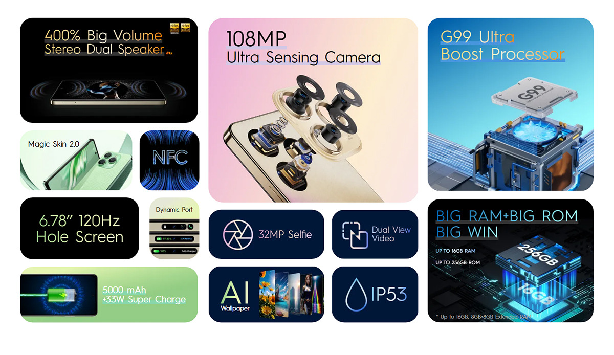 Tecno đã công bố Spark 20 vào đầu tháng này, mới đây nhà sản xuất đã công bố thêm biến thể Pro của dòng Spark 20 với chipset Helio G99 mạnh mẽ hơn và camera chính lên tới 108MP cùng mức giá vô cùng hấp dẫn, chỉ 2,4 triệu đồng.