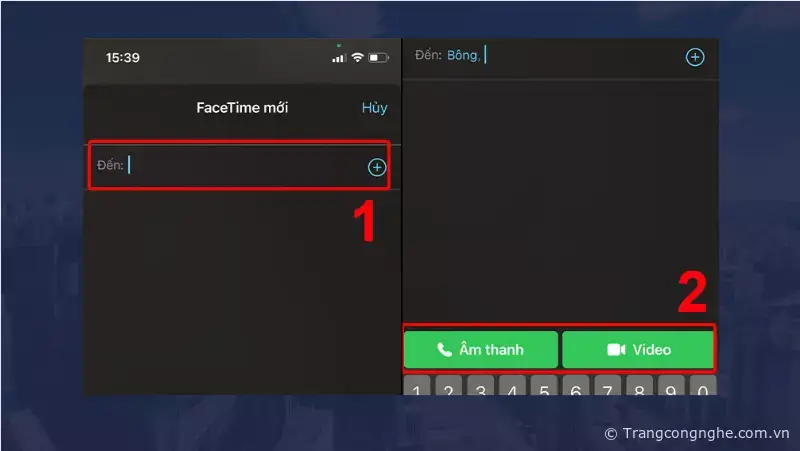 Truy cập vào danh bạ lựa chọn số điện thoại bạn muốn liên lạc qua Facetime => Chọn biểu tượng “ Facetime” ở phía dưới tên người gọi.