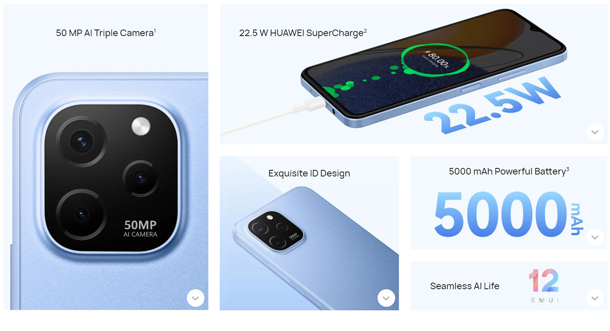 Các tính năng khác trên nova Y62 và Y62 Plus bao gồm thiết lập SIM kép, 4G VoLTE, Wi-Fi 802.11 b/g/n, Bluetooth 5.1, GPS, cổng USB-C, cảm biến vân tay ở cạnh bên và giắc âm thanh 3,5 mm.