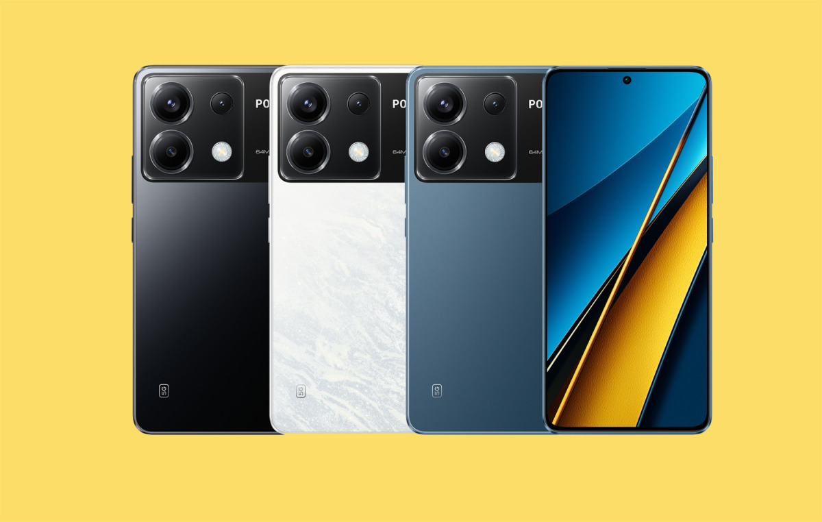 Poco X6 5G sẽ có 3 tùy chọn màu sắc là Đen, Xanh và Trắng; Poco X6 Pro 5G sẽ có 3 màu là Đen, Xám và Vàng.