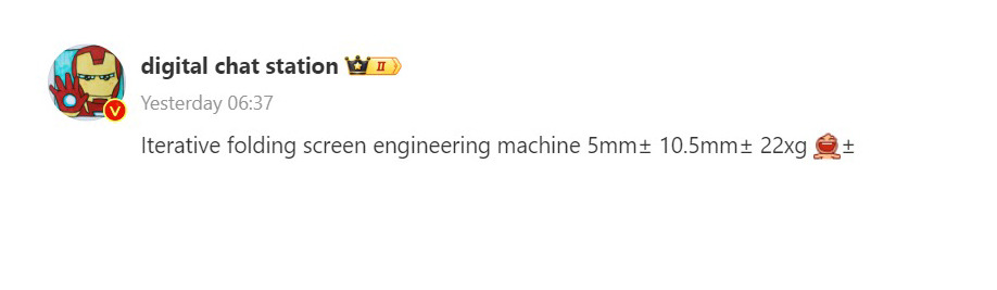 Theo một bài đăng trên Weibo, leaker nổi tiếng Digital Chat Station cho biết một chiếc điện thoại thông minh với màn hình có thể gập lại sắp ra mắt dự kiến sẽ có độ dày 5 mm khi mở ra và 10,5 mm khi gập lại. Ngoài ra, DCS cũng nói thêm rằng thiết bị sẽ nặng từ 220 gram đến 229 gram, với trọng lượng chính xác nằm trong phạm vi này, ước tính dưới 230 gram.