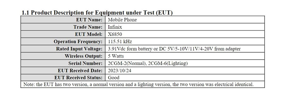 Theo danh sách của FCC, Infinix Note 40 Pro dường như đi kèm với bộ nhớ lưu trữ 256 GB và có biến thể RAM 12 GB. Điện thoại hỗ trợ kết nối mạng 4G và có tùy chọn màu Vintage Green kèm với bộ sạc nhanh có dây 70W và sạc không dây 5W.