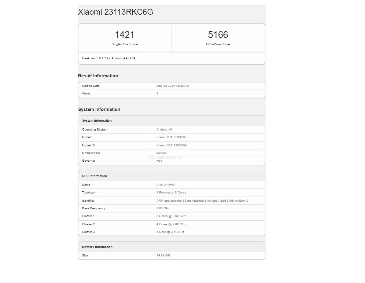 Theo đó, dữ liệu Geekbench cho thấy thiết bị mang số hiệu 23113RKC6G có thể là Poco F6 Pro, chiếc điện thoại này được trang bị Snapdragon 8 Gen 2 , chạy Android 14 và trang bị 16GB RAM. Nhưng có thể sẽ có nhiều tùy chọn RAM hơn vẫn chưa được xác nhận.