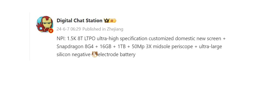 Hôm nay, tài khoản này gợi ý thêm rằng Realme GT 7 Pro sẽ có màn hình OLED 8T LTPO cung cấp độ phân giải 1,5K, đây sẽ là tấm nền tùy chỉnh được cung cấp bởi một nhà sản xuất màn hình trong nước.