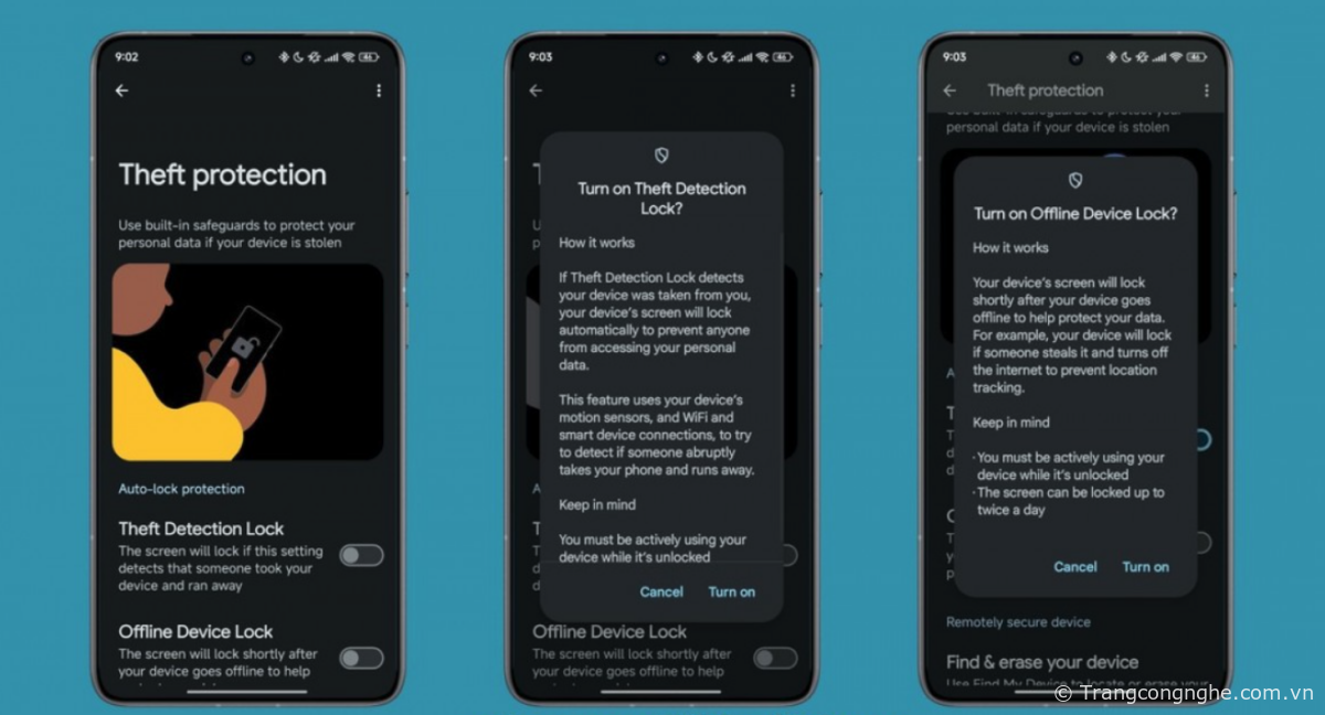 Theo thông tin từ Google, các tính năng mới này dần được áp dụng trên một số mẫu điện thoại Android thông qua cập nhật cài đặt Google Play Services. Việc nâng cao tính năng bảo mật giúp người dùng yên tâm hơn khi sử dụng thiết bị di động, đặc biệt trong trường hợp không may bị mất cắp.