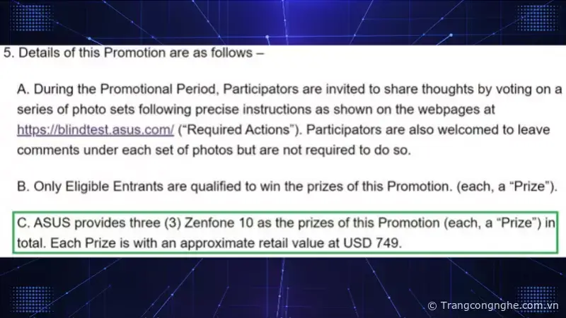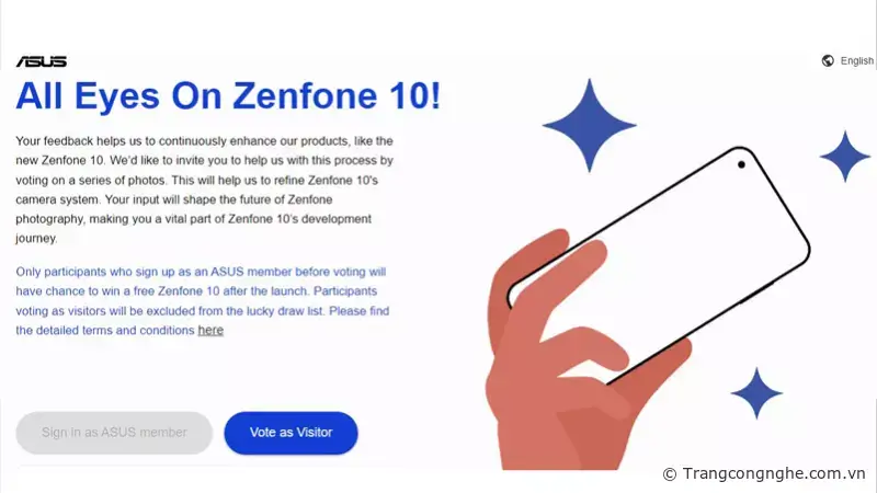 Gần đây, ASUS đã giới thiệu một trang web chuyên dụng được thiết kế dành riêng cho thử nghiệm camera của Zenfone 10. Trang web này cho phép người dùng bình chọn nhiều bức ảnh khác nhau, nhằm thu thập các phản hồi từ người dùng để chỉnh sửa khả năng chụp ảnh của điện thoại. Ngoài ra, người tham gia còn có thể tham gia bốc thăm may mắn để có cơ hội trúng điện thoại Zenfone 10 khi máy chính thức lên kệ.