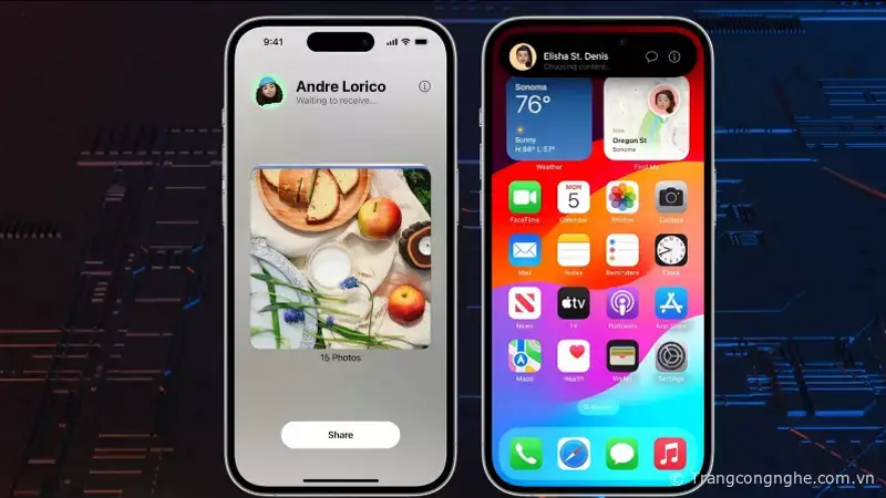 Cũng giống như tính năng NameDrop, việc tiếp cận giữa hai iPhone cho phép người dùng chia sẻ nội dung như ảnh và tệp tin khác thông qua AirDrop. Bằng cách đơn giản đưa hai điện thoại iPhone gần nhau, quá trình truyền dữ liệu qua AirDrop sẽ tự động bắt đầu, loại bỏ hoàn toàn yêu cầu hiện tại của việc thủ công lựa chọn người nhận từ danh sách AirDrop trong bảng chia sẻ.
