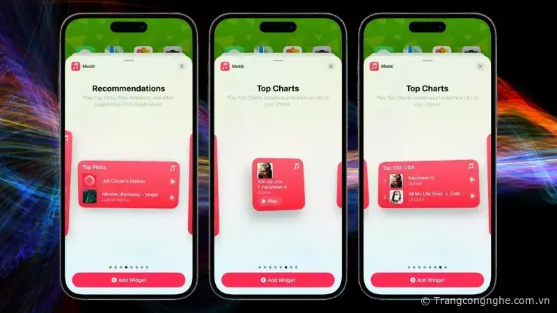 Nhờ vào tính năng này, người dùng có thể dễ dàng truy cập và kiểm soát các chức năng của Apple Music ngay từ màn hình chính mà không cần mở ứng dụng. Các kích thước widget khác nhau cung cấp linh hoạt và tối ưu hóa cho không gian màn hình và nhu cầu sử dụng cá nhân của người dùng.