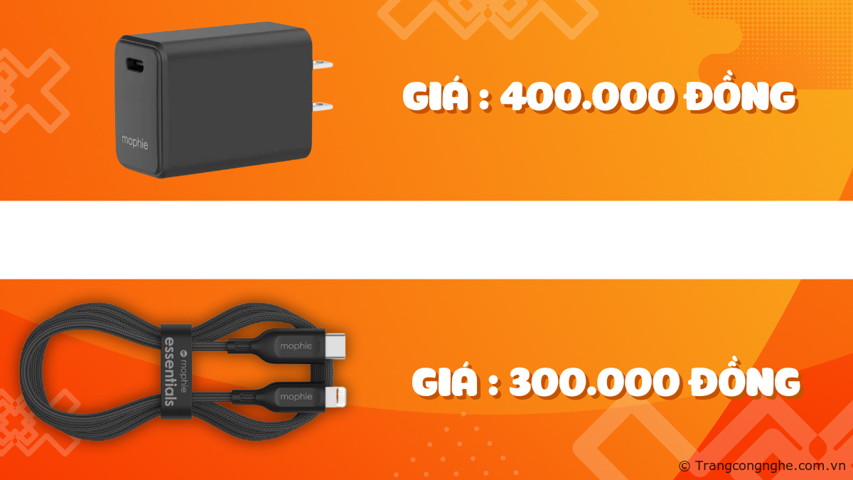 Giá bán củ sạc Mophie Essentials 30W vào khoảng 400.000 đồng và dây cáp Mophie Essentials 1M là hơn 300.000 đồng.