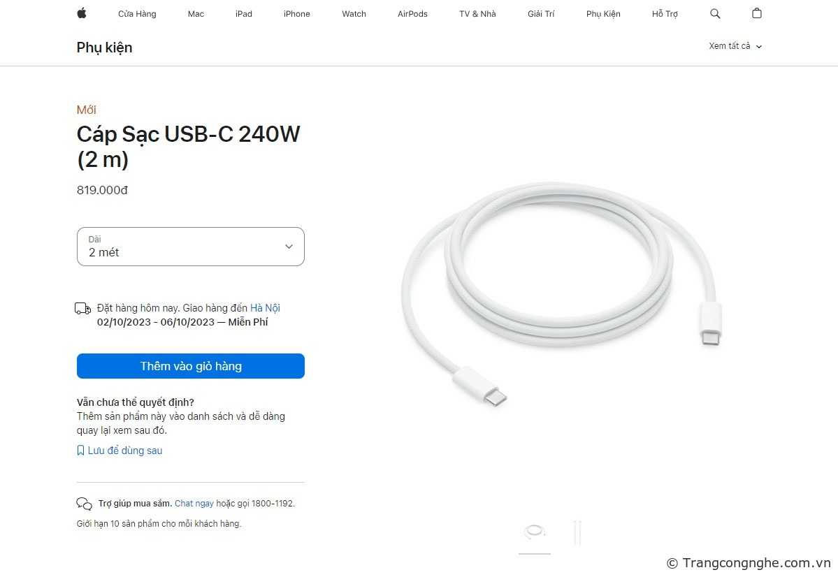 Trên website bán hàng của Apple Store, dây cáp USB-C to C 240W có chiều dài 2 mét đang được bán với giá 819.000 đồng, trong khi dây dài 1 mét với công suất 60W đang bán với giá 539.000 đồng. Với những bạn đang tìm cho mình một sợi dây cáp dự phòng với mức giá rẻ hơn, hãy tham khảo ngay danh sách các sản phẩm dược Trang Công Nghệ giới thiệu dưới đây.
