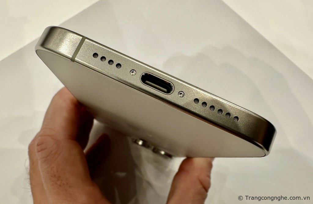 Khác với iPhone 15 tiêu chuẩn và iPhone 15 Plus, sạc USB-C trên bản 15 Pro là USB-C 3.0, trong khi trên iPhone 15 là 2.0. Apple cho biết sự khác biệt này không giúp tốc độ sạc của iPhone 15 Pro và 15 Pro Max nhưng hơn, mà chỉ giúp tốc độ truyền dữ liệu nhanh hơn gấp 20 lần so với USB-C 2.0.