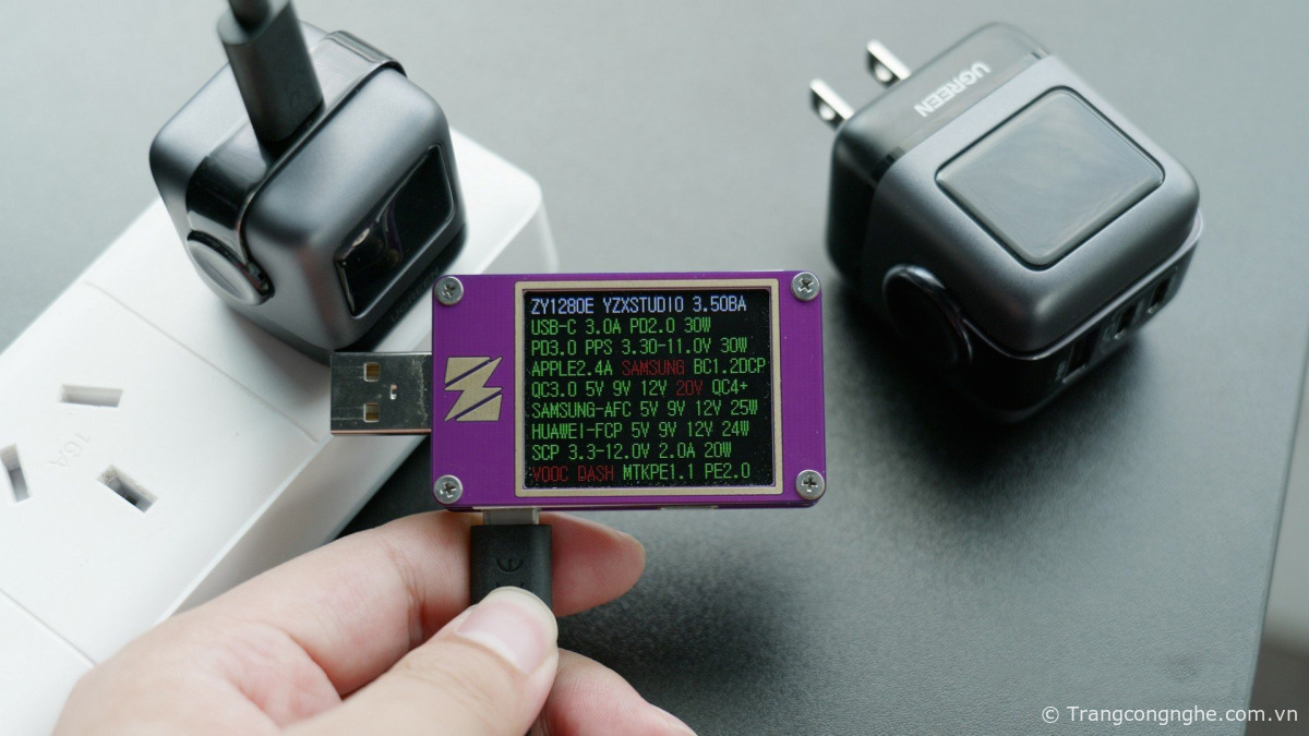 Về chức năng chính của củ sạc, Ugreen Nexode RG 30W hỗ trợ đầu ra có công suất tối đa 30W với một cổng USB-C duy nhất. Thực tế kiểm tra, Nexode RG 30W hỗ trợ nhiều công nghệ sạc với nhiều giao thức sạc nhanh và công suất khác nhau.
