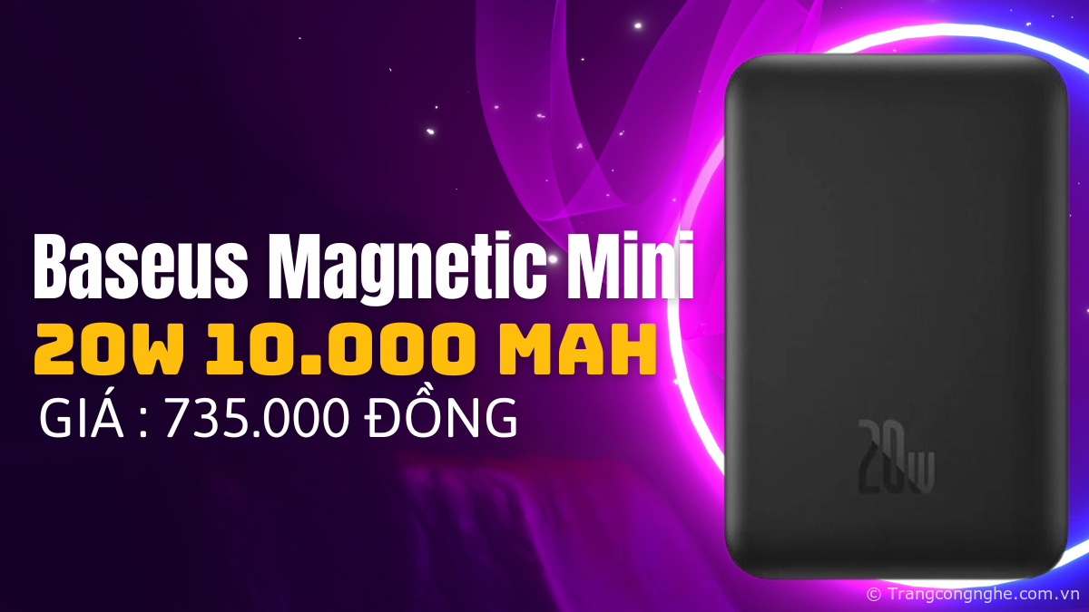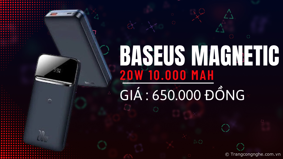 Tiếp tục là một sản phẩm sạc dự phòng đến từ thương hiệu phụ kiện Baseus, nhưng là một sản phẩm có dung lượng pin cao hơn. Sạc dự phòng Baseus Magnetic 20W sở hữu kích thước nhỏ gọn cùng thiết kế linh hoạt, hiển thị thông số pin trên màn hình LED được tích hợp sẵn.