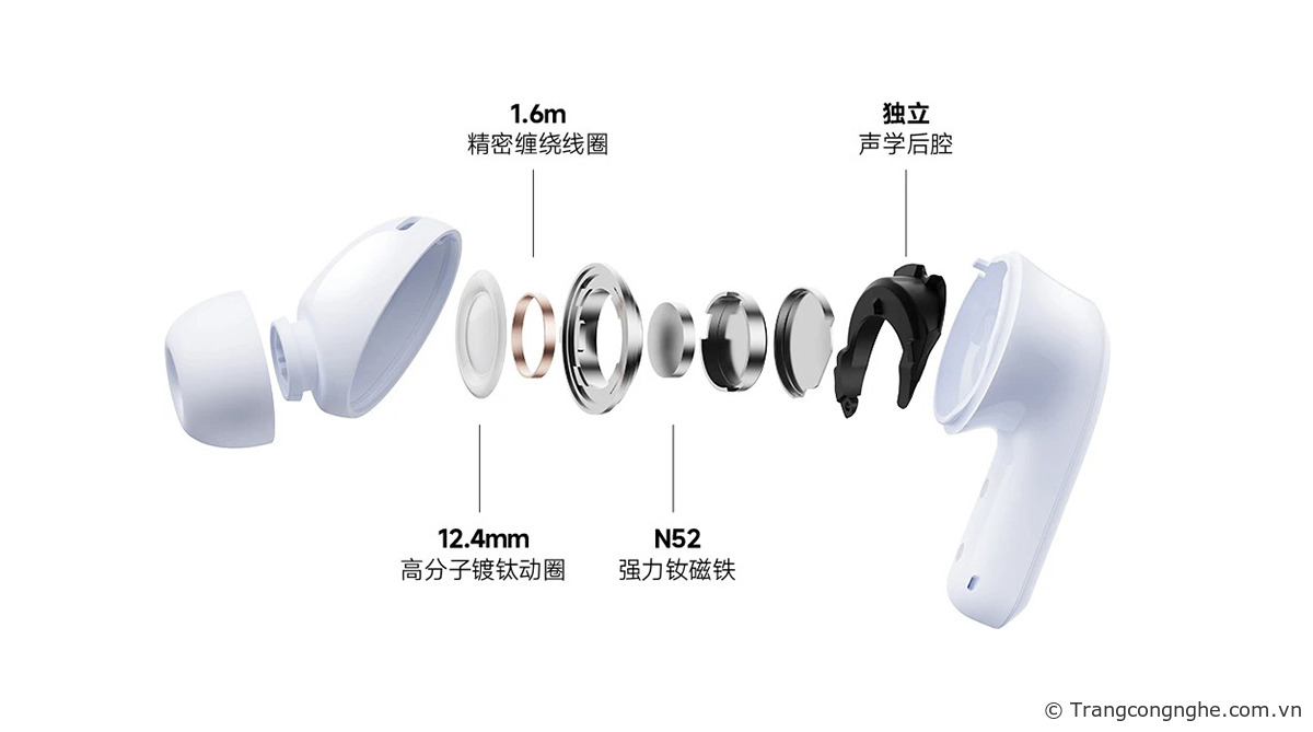 Về hiệu suất âm thanh, tai nghe Redmi Buds 5 được trang bị một bộ cài đặt trình điều khiển động đường kính 10mm. Với đường kính lớn, nó có thể di chuyển một lượng lớn không khí để tạo ra âm thanh với độ sâu và độ chi tiết cao hơn.