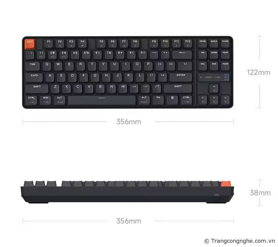 Dành cho ai chưa biết, TKL là cách đặt tên dựa theo cụm từ viết tắt của TenKeyLess, nghĩa là bàn phím không có phím số. Xiaomi TKL sử dụng bố cục 87 phím, thiết kế giúp tối ưu hiệu quả khi gõ phím. Xiaomi đã thu hẹp khoảng cách giữa hàng phím chức năng F và vùng phím chính, đảm bảo người dùng có thể duy trì trải nghiệm gõ thoải mái và tiện dụng trong thời gian dài. Các phím keycap được thiết kế cong lõm phù hợp với các đầu ngón tay.