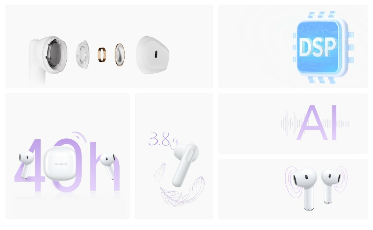 Tại sự kiện công bố điện thoại thuộc dòng honor 100 mới, hãng công nghẹ Trung Quốc đã ra mắt mẫu tai nghe true wireless có tên gọi Earbuds X6, nổi bật với driver 10mm và màng loa được phủ chất liệu composite polymer.