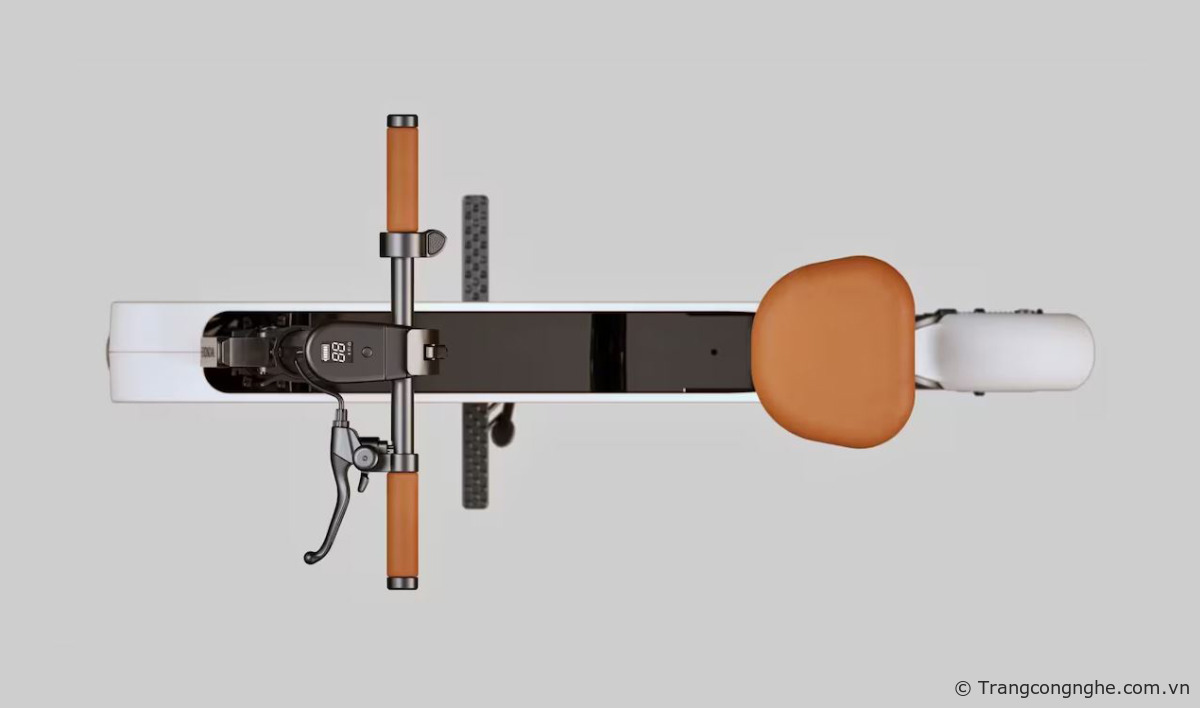 Tay nắm và yên xe có màu da nâu, màn hình LED tích hợp khá đơn giản và dễ đọc, với hai mức công suất, đồng hồ tốc độ, mức pin và báo đèn, chế độ khóa.