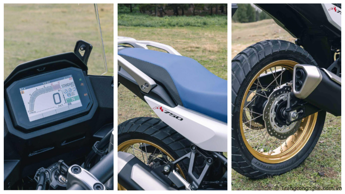 Bảng đồng hồ tốc độ trên Honda XL750 Transalp hiển thị đầy đủ các thông tin cần thiết trên màn hình TFT màu 5 inch.