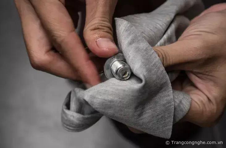Lau sạch cát đất bám quanh chân răng ốc xả nhớt, siết với lực vừa phải.