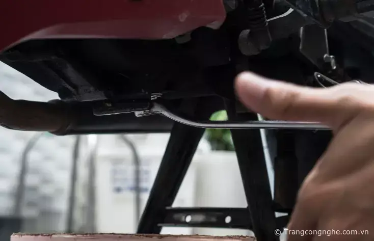 Anh em nên nới ốc cẩn thận với lực vừa đủ. Tránh việc chìa khóa va đập gây hư hỏng miếng kim loại bảo vệ chắn phía trước ốc.