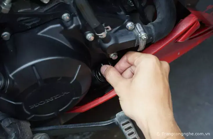 Khi đã nới lỏng được ốc nhớt, nên dùng tay để tháo hẳn ốc ra, tránh để rơi ốc vào thau đựng nhớt cũ.