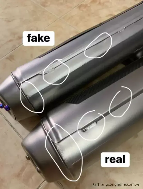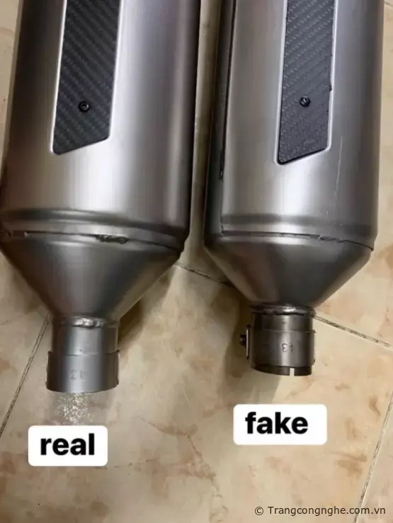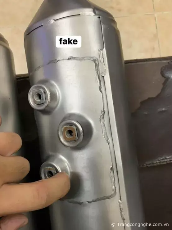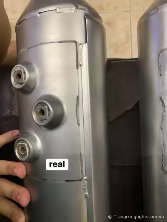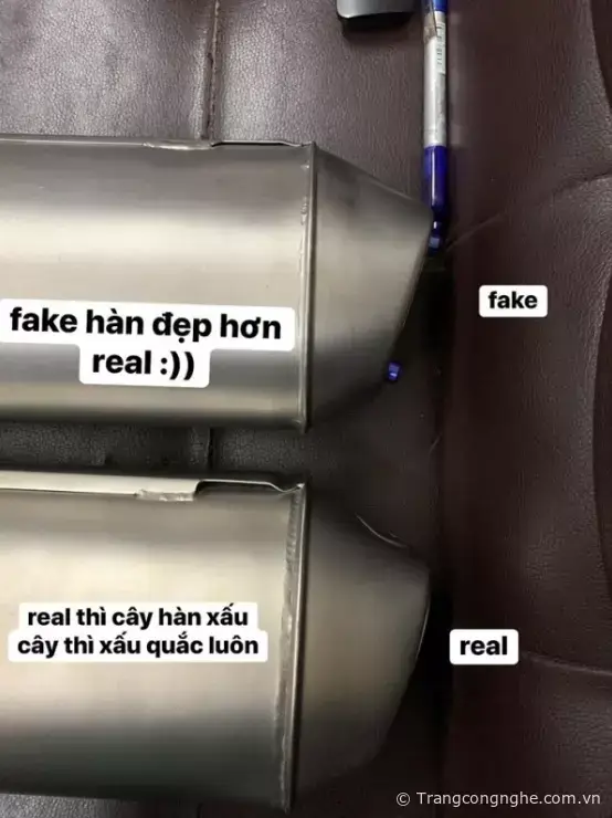 Ngay vị trí trong ảnh mà nguồn Nguyễn Tuấn đánh dấu ta có thể thấy phần pô real được gia công đẹp hơn và mối hàn đơn giản công phu chi tiết hơn rất nhiều.