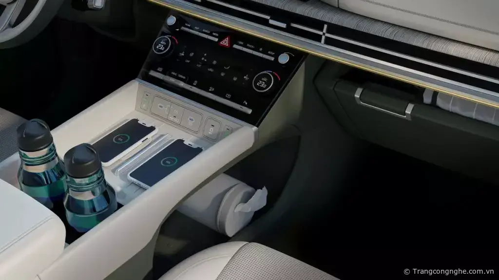 Trong cabin của Hyundai Santa Fe 2024, có các tiện ích nổi bật như: