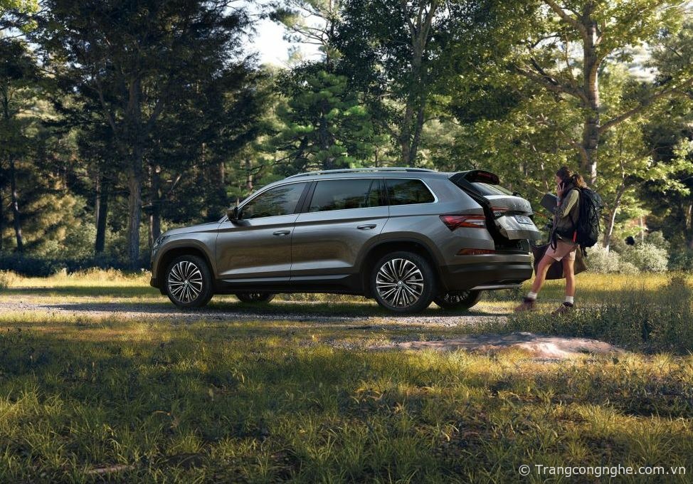 Kodiaq lớn hơn Karoq một chút với kích thước chiều dài xe là 4.697mm, chiều cao 1.681 mm và chiều rộng 1.882. Khoảng sáng gầm là 192 mm, trục cơ sở 2.791 mm với góc thoát trước 19 độ, góc thoát sau 15,1 độ. Bên cạnh đó, Kodiaq được trang bị la zăng kích thước 19 inch với thiết kế thể thao, mạnh mẽ.