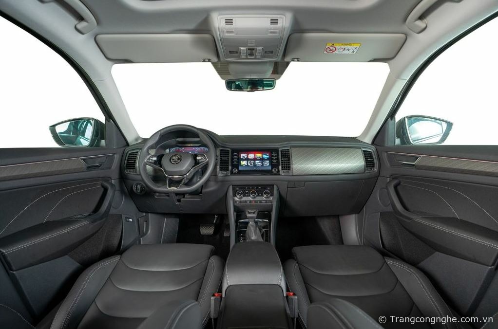 Không gian nội thất bên trong xe mang đến sự sang trọng, tiện nghi và đúng chất một chiếc SUV cỡ lớn. Skoda Kodiaq được trang bị một màn hình hiển thị thông tin lớn có kích thước 12,15 inch, cùng với màn hình giải trí trung tâm 8 inch. Hệ thống này cung cấp nhiều tùy chọn giao diện và chế độ hiển thị khác nhau, giúp người lái dễ dàng kiểm soát và điều khiển chiếc xe. Hệ thống giải trí còn kết nối với 8 loa cao cấp được phân bố xung quanh xe, mang lại trải nghiệm âm thanh chất lượng cao cho hành trình của bạn.
