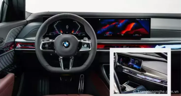 Thiết kế bộ điều khiển trung tâm của BMW 7-Series 2023 đã trải qua một số thay đổi, như kích thước nhỏ hơn so với phiên bản trước. Tại vị trí này, Interaction Bar - thanh điều khiển cảm ứng được đặt giữa bảng đồng hồ và bộ điều khiển trung tâm, với hàng loạt các nút bấm ảo và hệ thống đèn nền nội thất. Bên cạnh đó, xe còn được trang bị hệ thống điều hòa tự động 4 vùng độc lập và cửa sổ trời toàn cảnh Panorama.