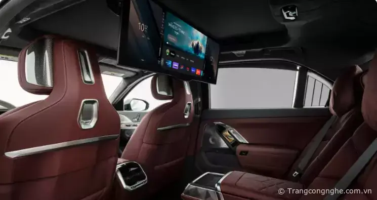 Đối với hàng ghế sau trên BMW 7-Series 2023, hành khách sẽ được trải nghiệm một không gian sang trọng và tiện nghi hơn. Xe được trang bị màn hình trần lớn với kích thước 31 inch và độ phân giải 4K, tạo nên một không gian giải trí tuyệt vời với chế độ Theater Mode. Ngoài ra, các hành khách còn có màn hình cảm ứng 5,5 inch trên tựa tay ghế, cho phép điều chỉnh các tính năng và trang bị của xe. Hệ thống âm thanh Diamond Surround Sound 36 loa cũng là một trong những tính năng đáng chú ý khác được trang bị trên xe.