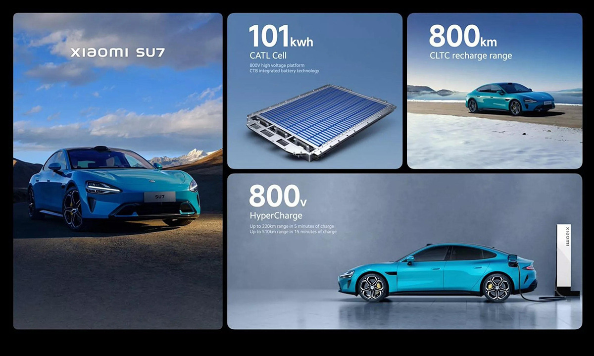 Cuối năm 2023, mẫu xe đầu tiên của Xiaomi mang tên SU7 đã được công bố. Bên cạnh đó tại Hội nghị Công nghệ Ô tô Xiaomi vào tháng 12, Lei Jun, người sáng lập, chủ tịch và CEO của Xiaomi đã giới thiệu 5 công nghệ cốt lõi của Xiaomi Auto bao gồm: hệ thống truyền động điện, pin, khuôn đúc, buồng lái thông minh và xe tự lái. Lei Juncũng thông báo rằng Xiaomi là nhà sản xuất ô tô duy nhất ở Trung Quốc sản xuất hàng loạt vật liệu hợp kim tự phát triển.