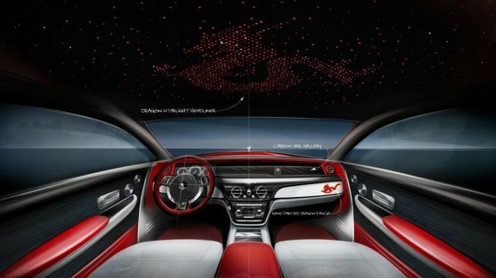 Biểu tượng rồng còn xuất hiện trên tựa đầu của mỗi ghế, được thêu tỉ mỉ với 5.449 mũi khâu và mất tới 20 giờ làm việc. Trần xe "Starlight Headliner" với 677 sợi quang và 667 bóng sợi quang khác tạo nên hình ảnh bầu trời đêm đầy sao, làm tăng thêm vẻ sang trọng và độc đáo cho chiếc xe.